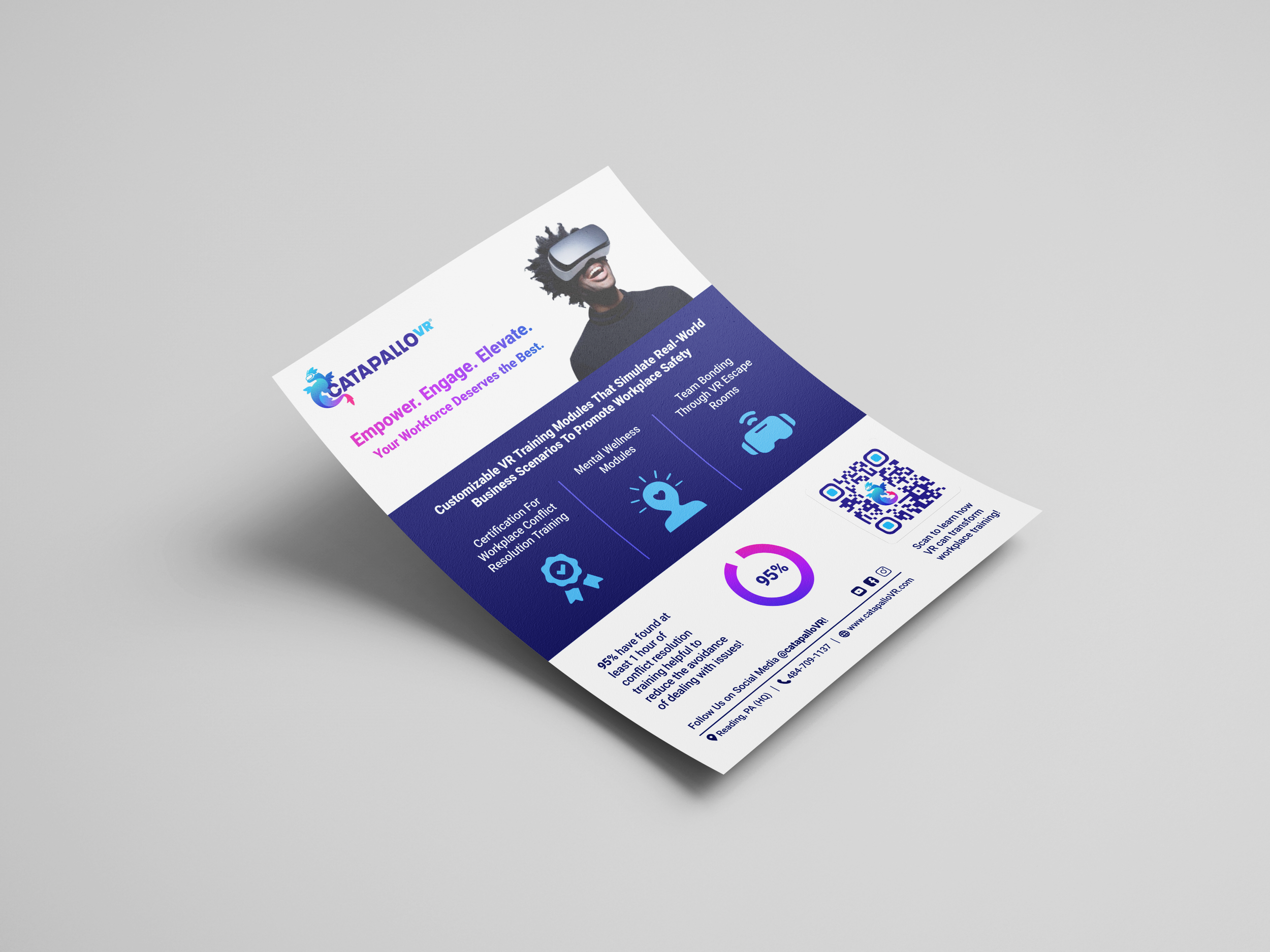 For this project, I designed a one-page corporate wellness flyer for CatapolloVR, focusing on a clean, visually engaging layout grounded in UX/UI design principles. The primary goal was to clearly communicate the company’s wellness offerings while maintaining a composition that reflects CatapolloVR’s brand identity.